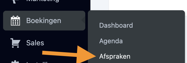 - Ga naar de afspraak (Boekingen > Afspraken)