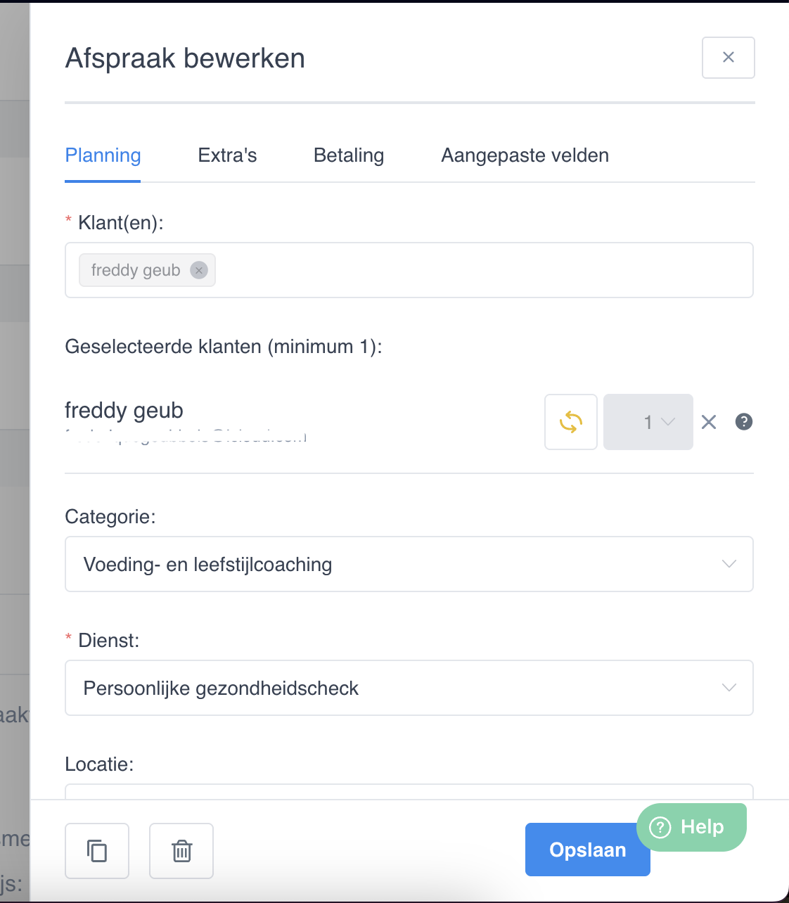 De dienst in de afspraak wordt hiermee bijgewerkt. Op de factuur verschijnt nu de aangepaste (declarabele) dienst.