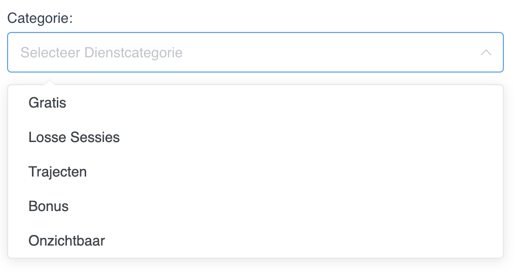 Ik heb als voorbeeld een 'Onzichtbaar' categorie aangemaakt. - Selecteer de juiste dienst